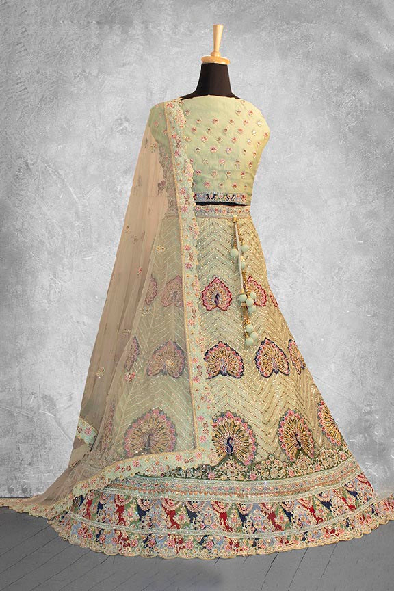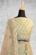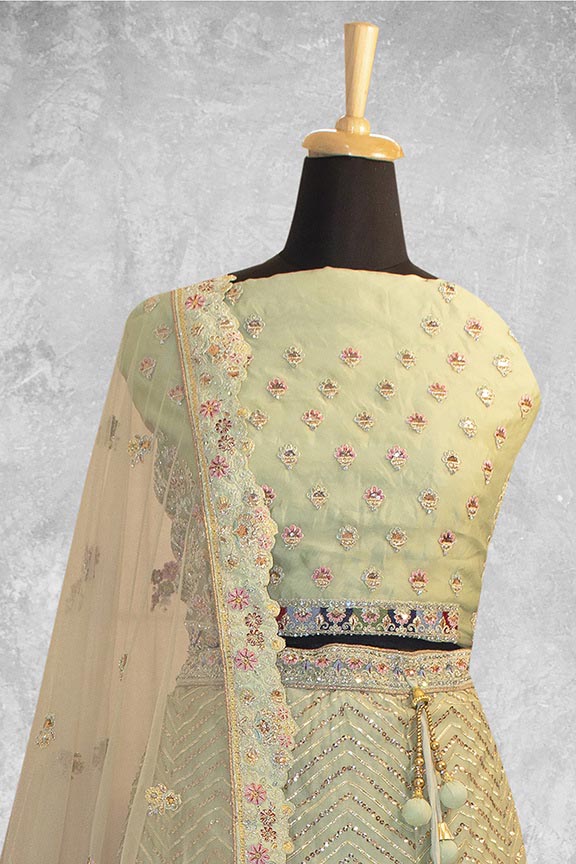 Light Green Organza Silk Embroidered Semi Stitched Lehenga Choli with Dupatta