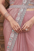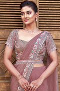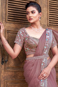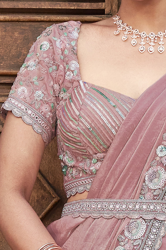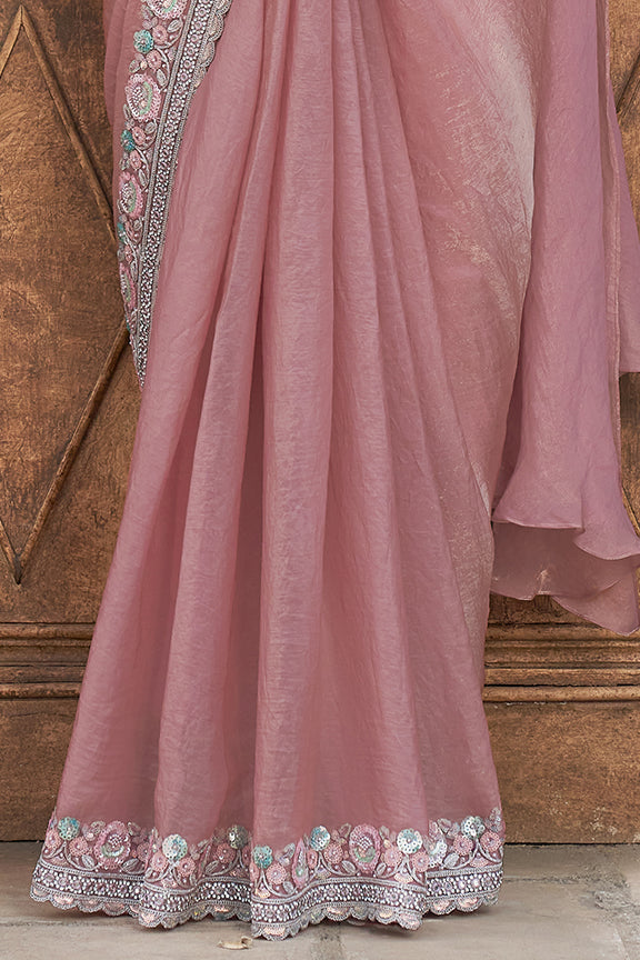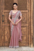 Peach Two Tone Satin Silk Hand Work Ready to wear saree.