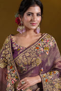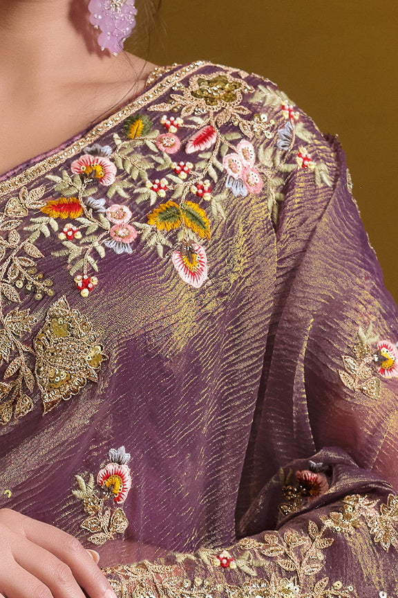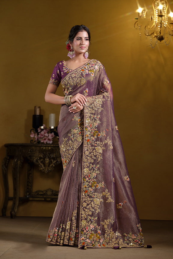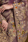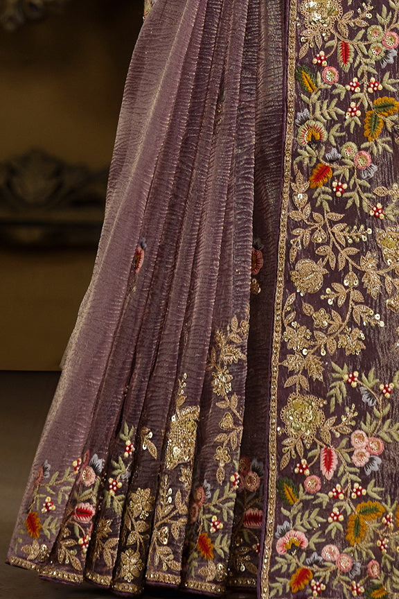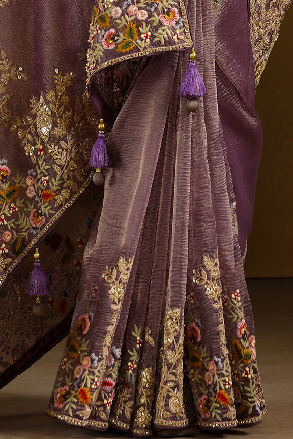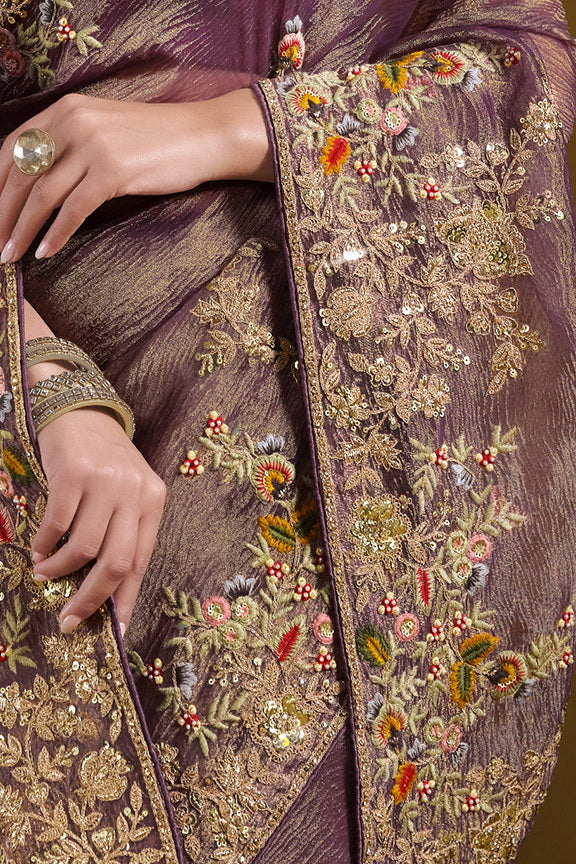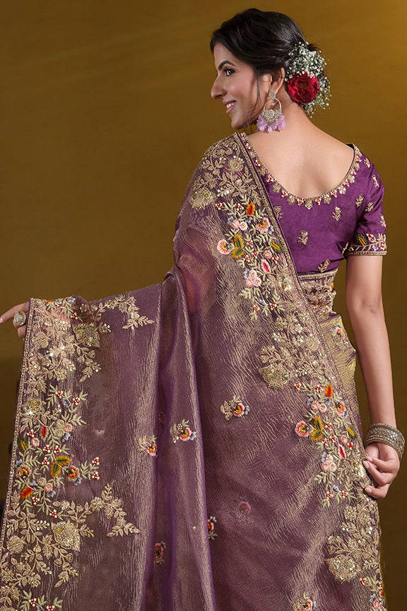 Purple Pure Banarasi Crush Pure Khatli work Designer Saree With Blouse.