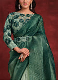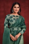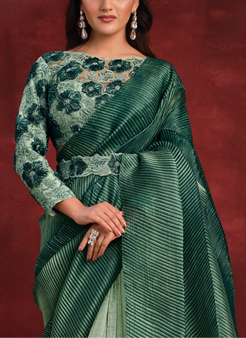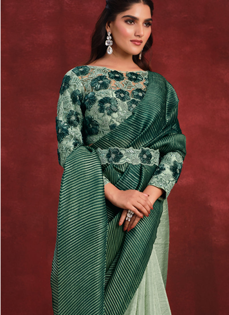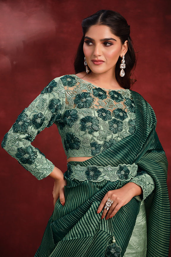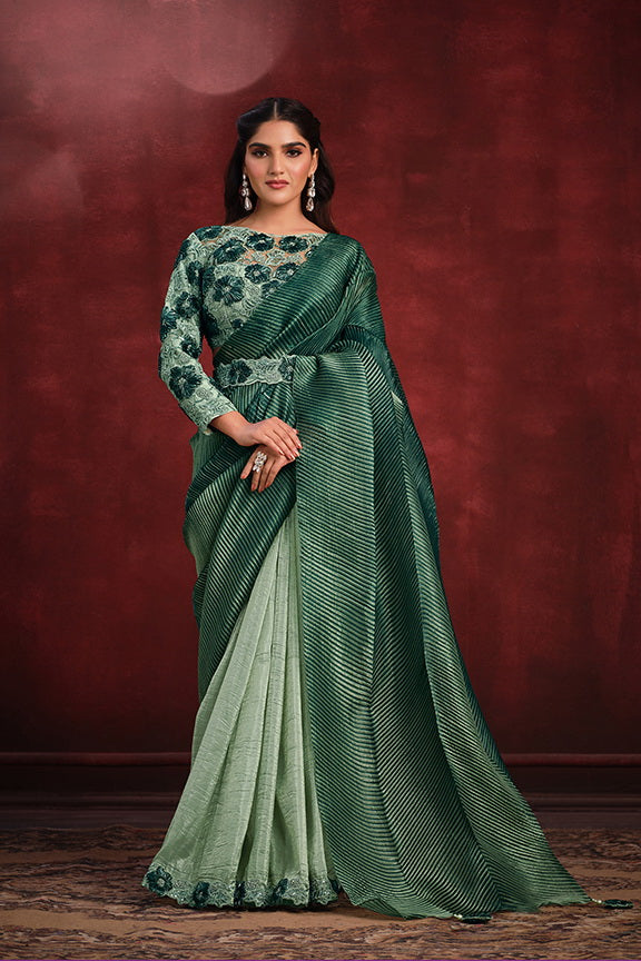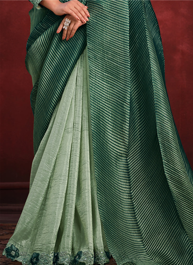 Green Banarasi Crush Silk Texture Pallu Saree with Stitched Blouse