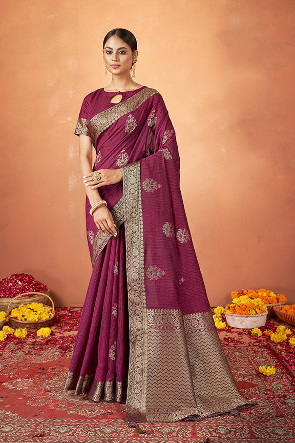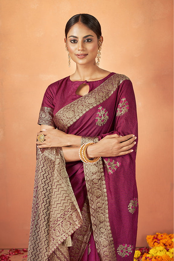 Maroon Tusser Silk Woven Design Saree with Unstitched Blouse
