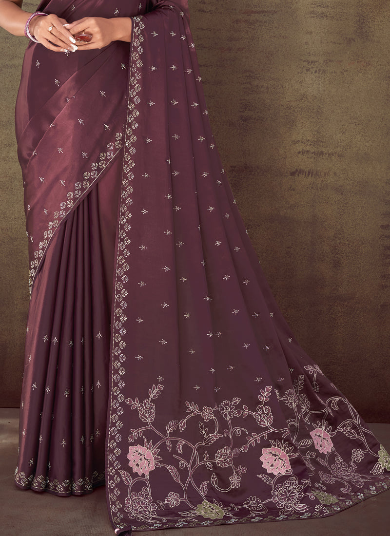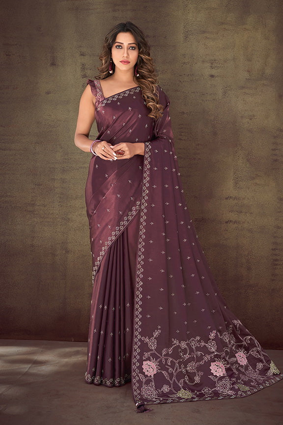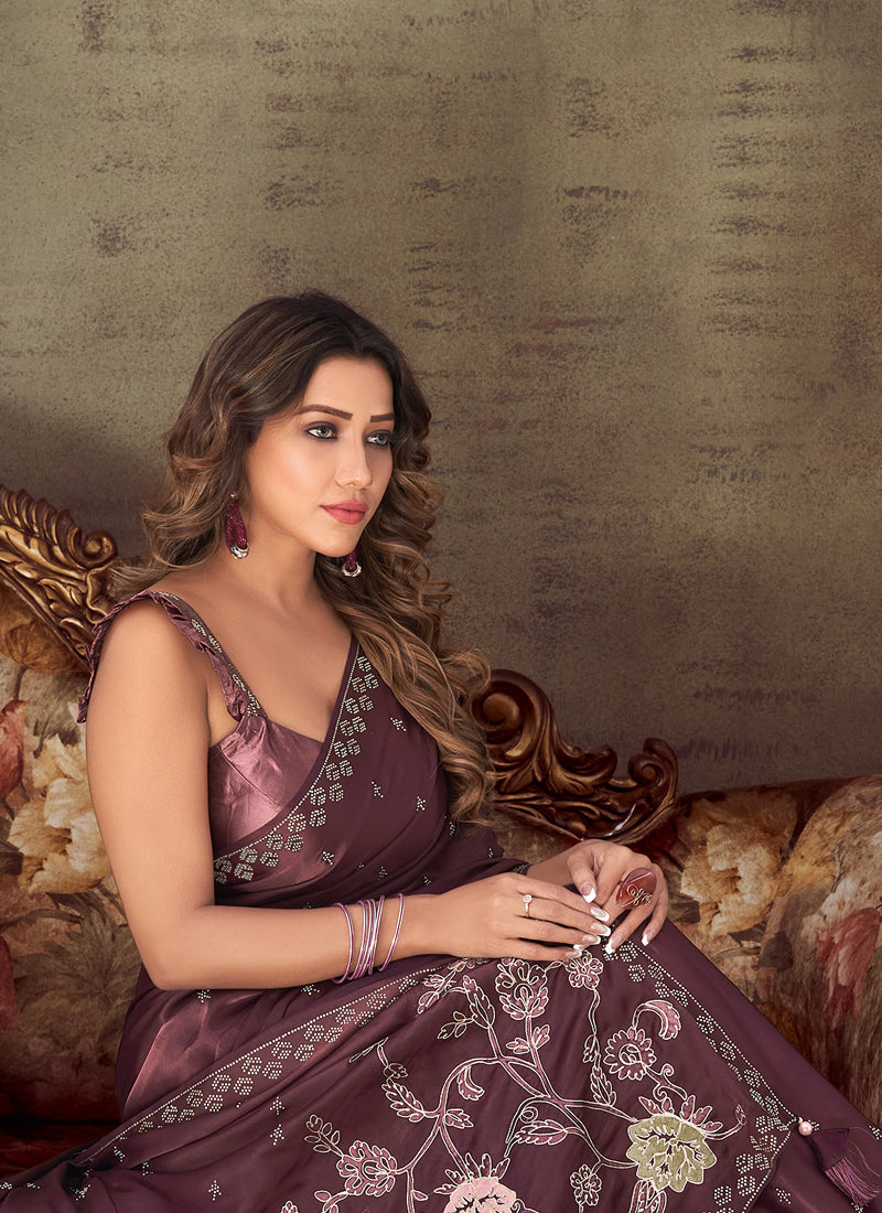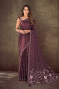 Pink Organza Silk Crepe Embroidered Saree with Unstitched Blouse
