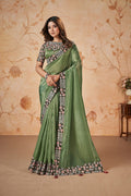 Green Banarasi Crush Silk Embroidered Saree with Unstitched Blouse