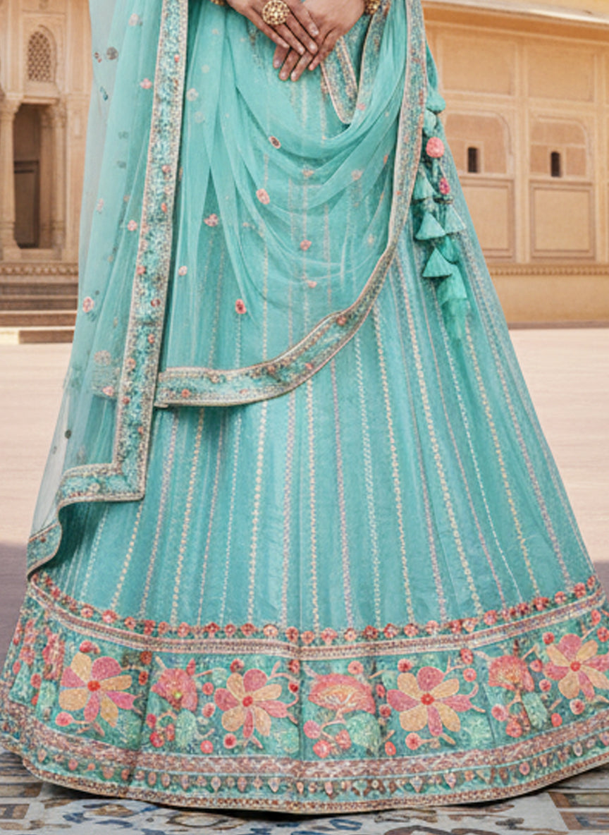 Blue Crepe Silk Thread Lehenga Choli