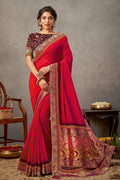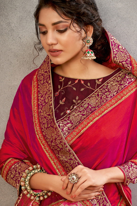 Red Silk Georgette Embroidered Saree with Unstitched Blouse