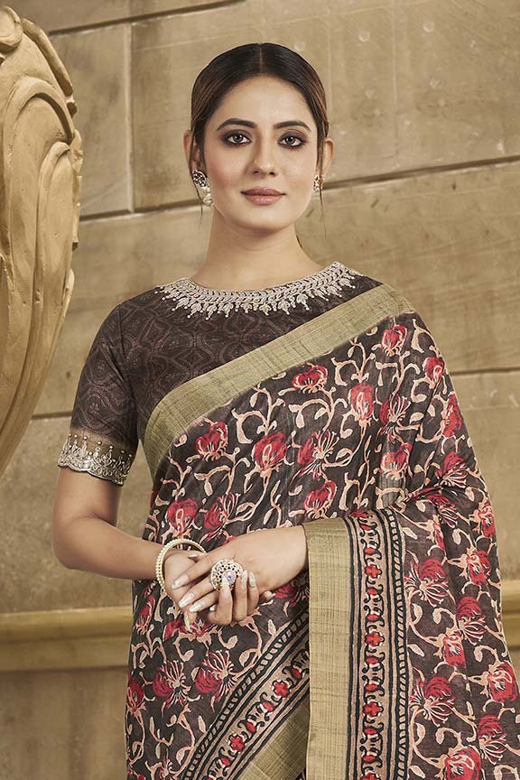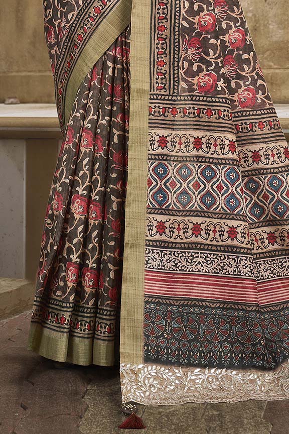 Brown Gajji Silk Hand work Saree with Unstitched Blouse