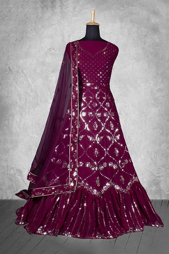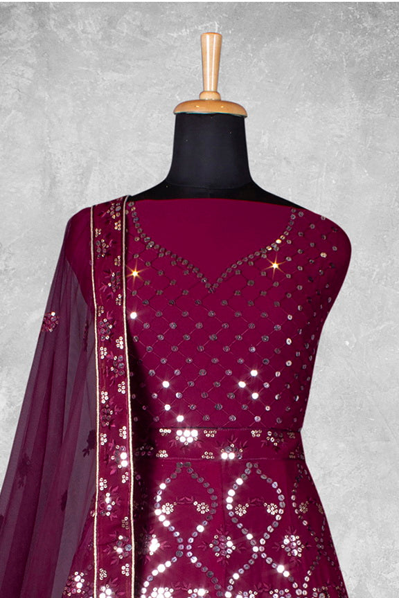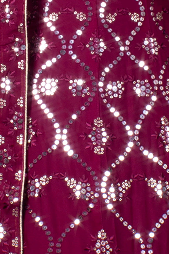 Magenta Georgette Embroidered Semi Stitched Lehenga Choli with Dupatta