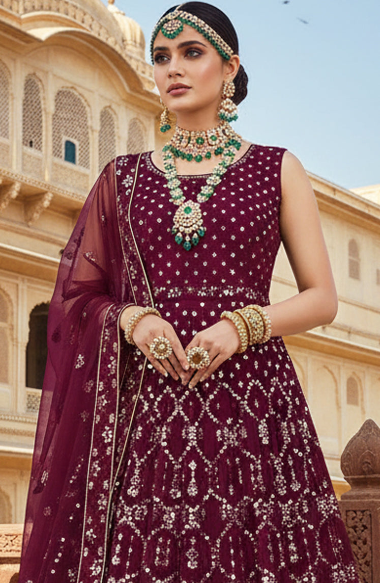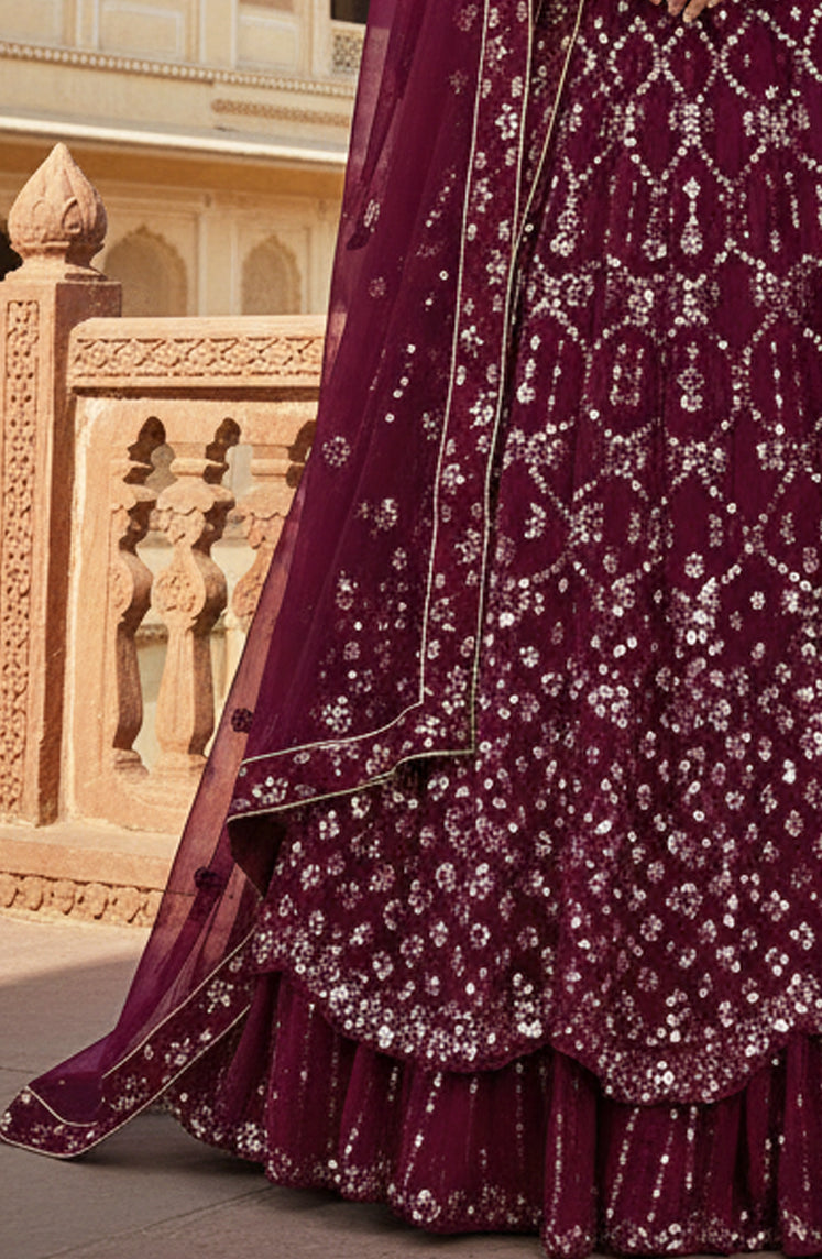 Wine Georgette Mirror Work Lehenga Choli