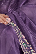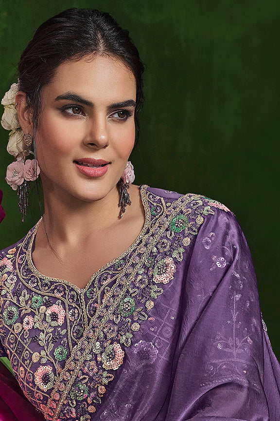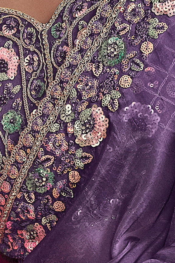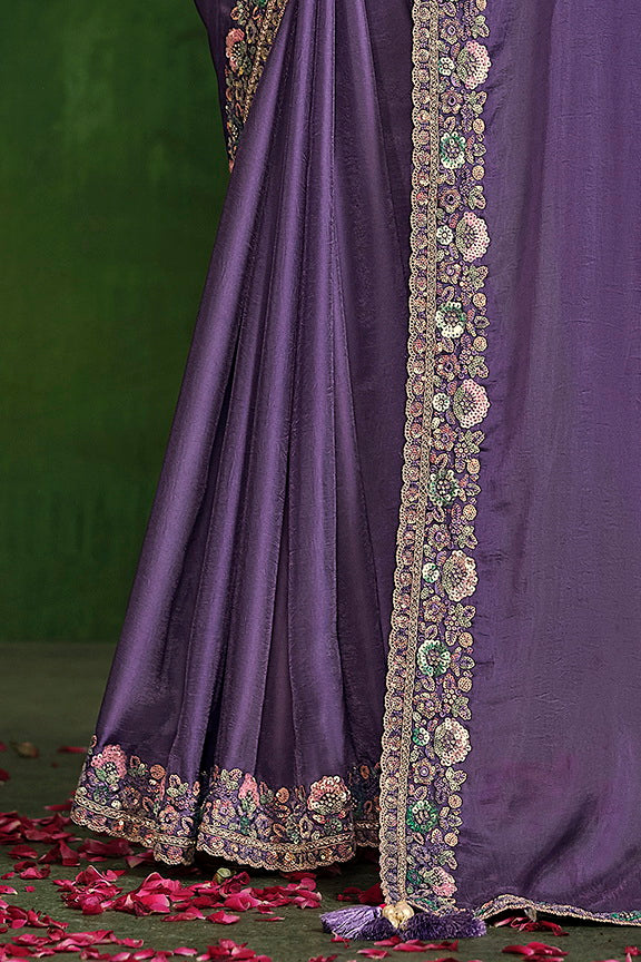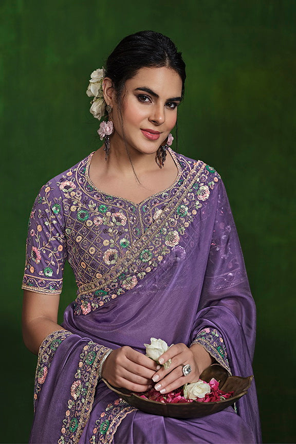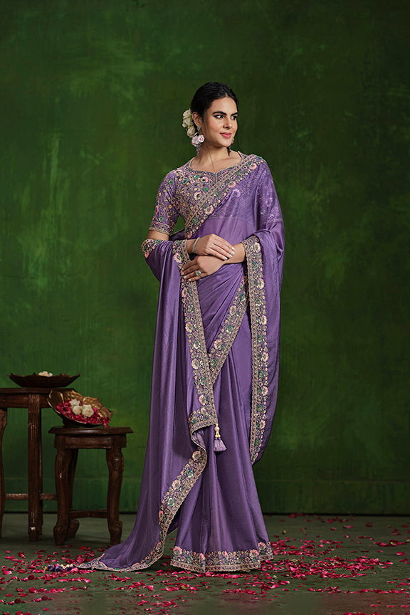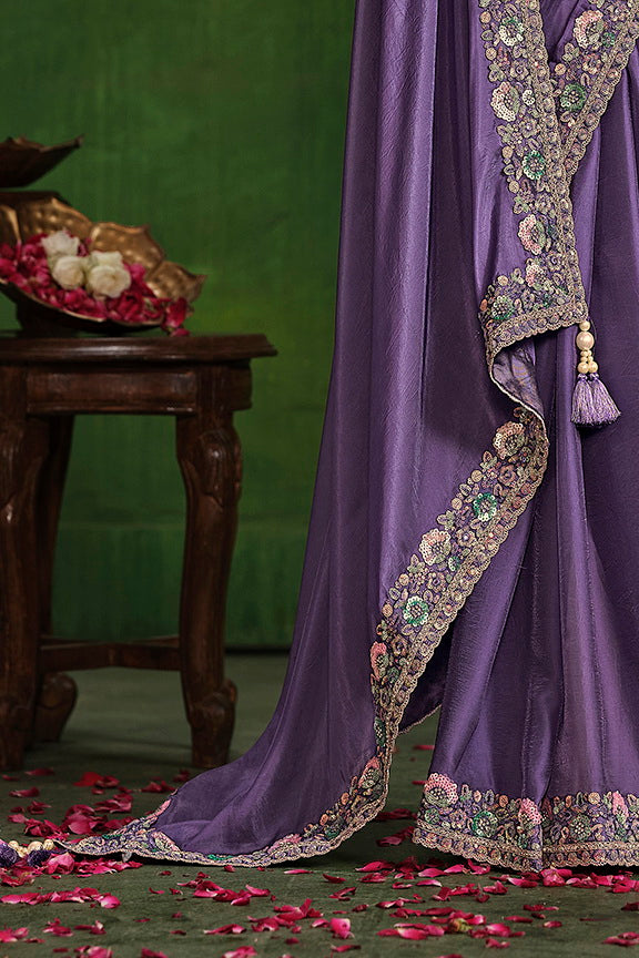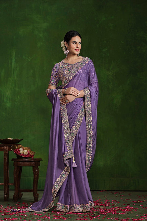 Lavendar Habotai Silk Dual Sequence with Handwork Saree with Stitched Blouse