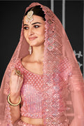 Pink Net Embroidered Semi Stitched Lehenga Choli