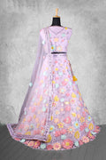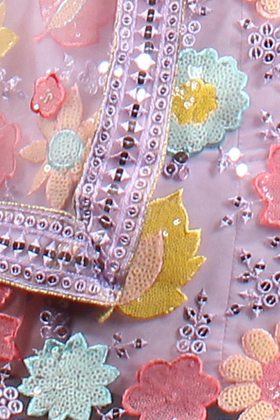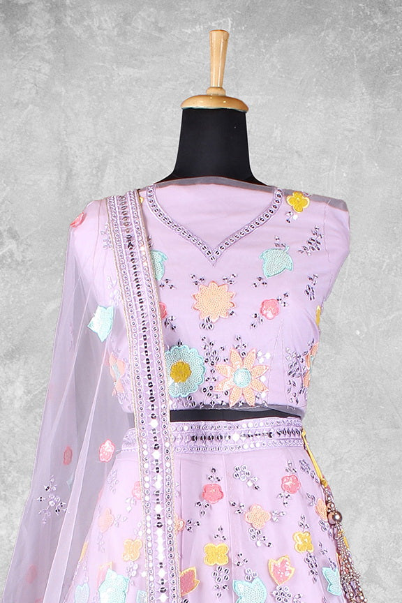 Lavender Net Embroidered Semi Stitched Lehenga Choli with Dupatta