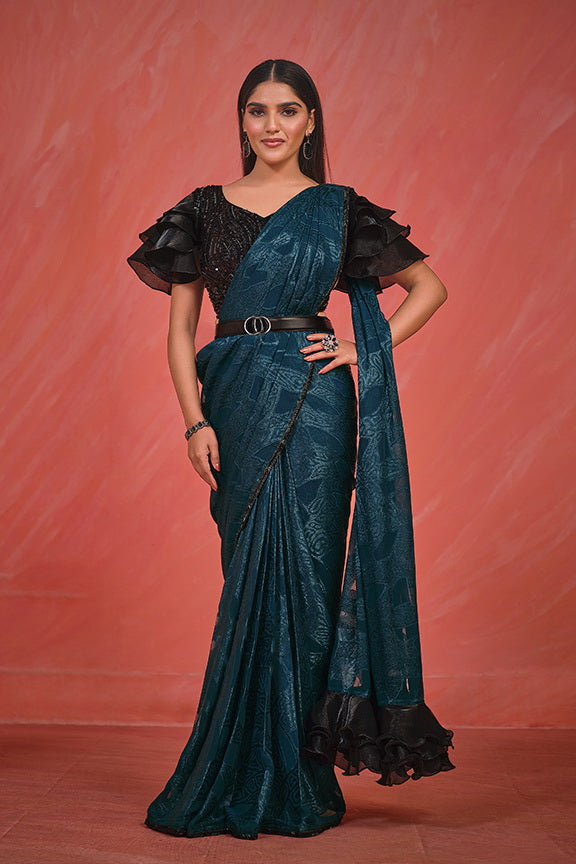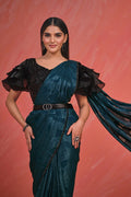 Blue Georgette Designer Ready to Wear Saree with Stitched Blouse