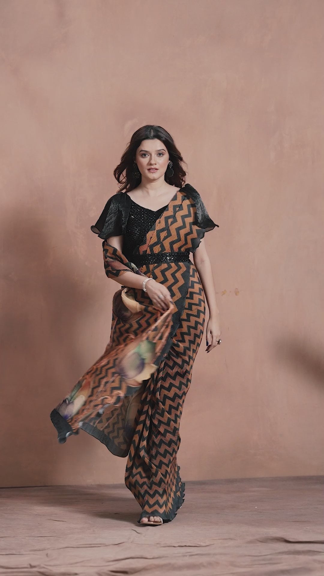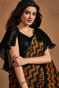 Brown Hand Work Satin Silk Ready to Wear Saree