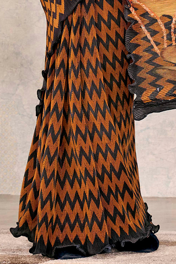 Gold Pure Satin Silk Squence Embroidery Ready to Wear Saree