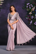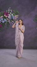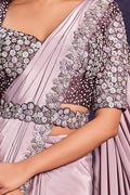 Lavendar Pure Crape Georgette Embroidered Ready to Wear Saree with Stitched Blouse