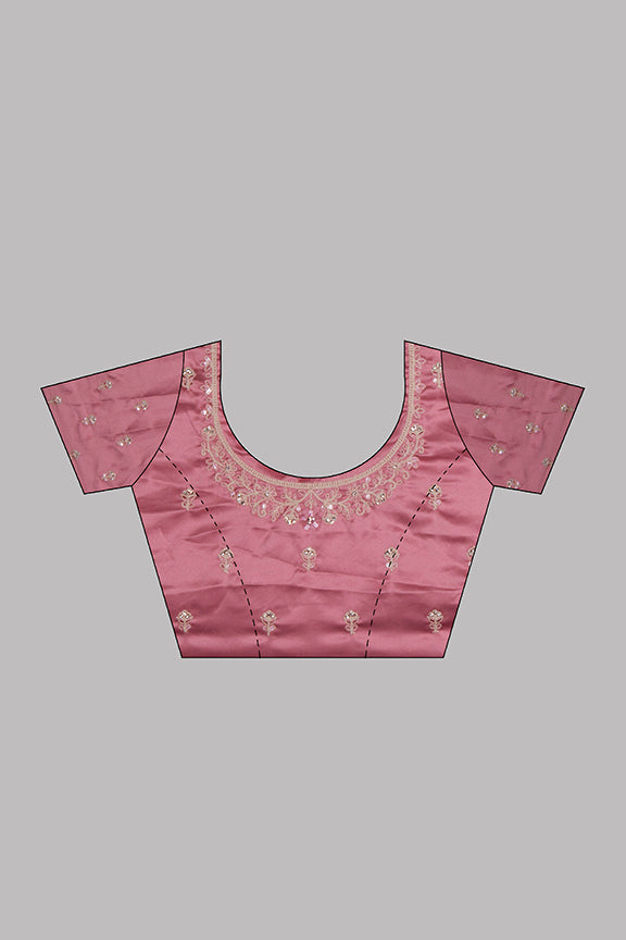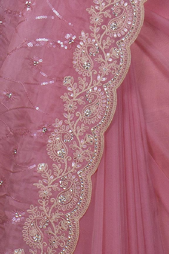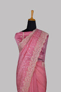 Pink Organza Satin Silk Cord Work Saree with Unstitched Blouse