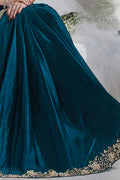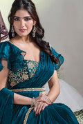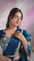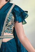 Teal Moti Work Satin Silk Ready to Wear Saree