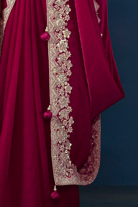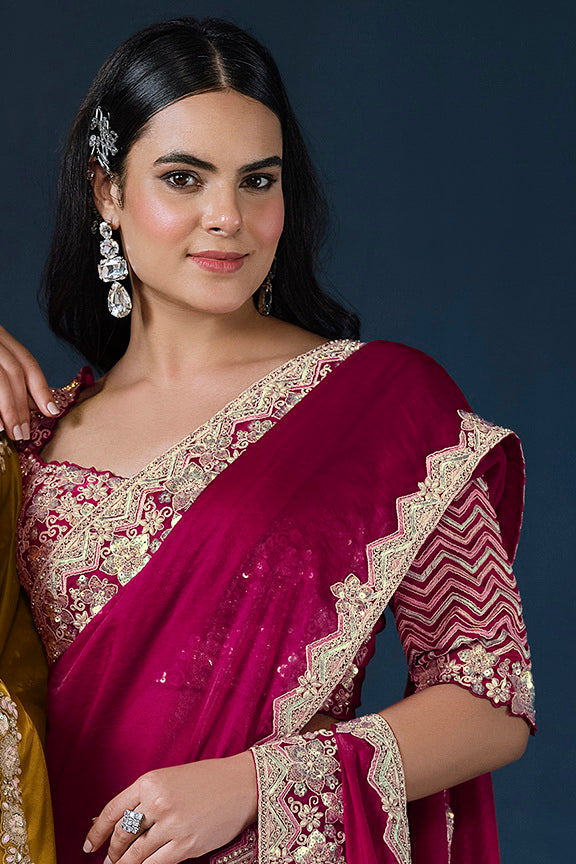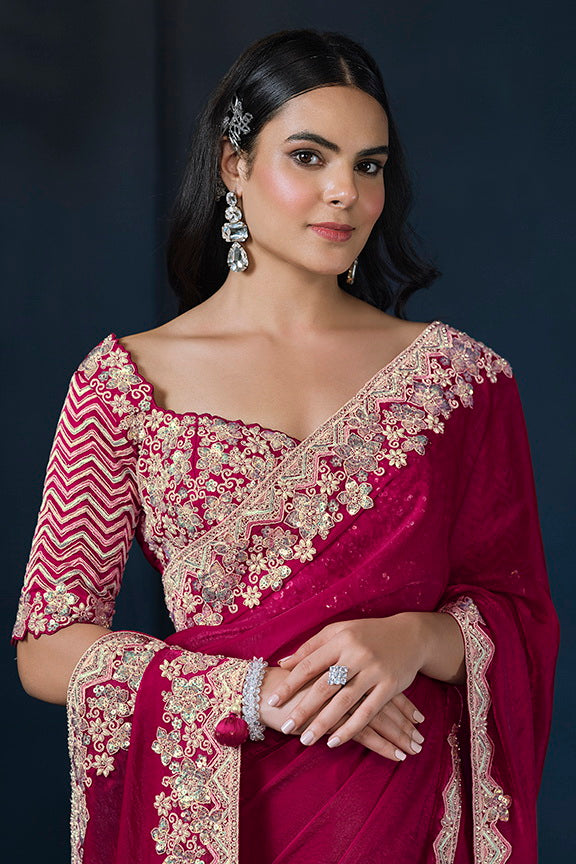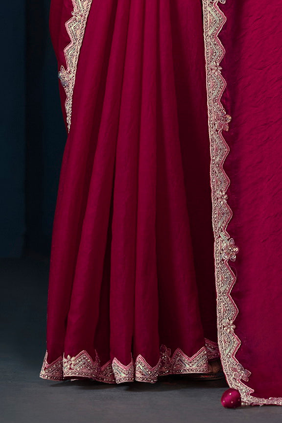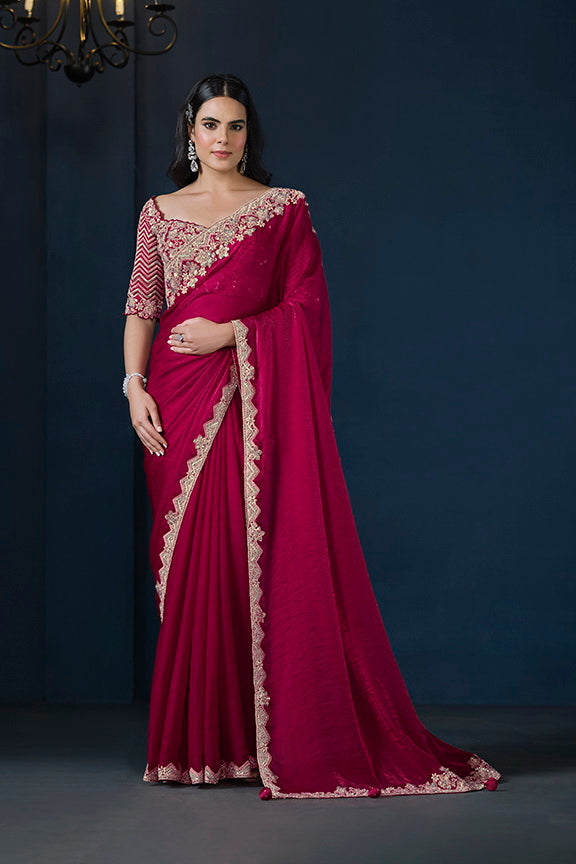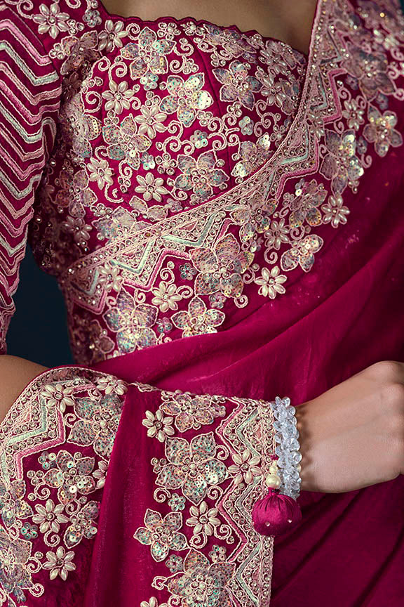 Pink Two Tone Satin Silk Sequins with Pure Handwork Saree with Unstitched Blouse