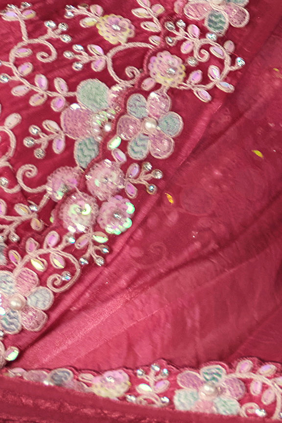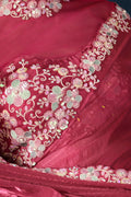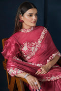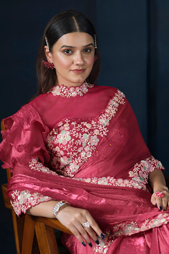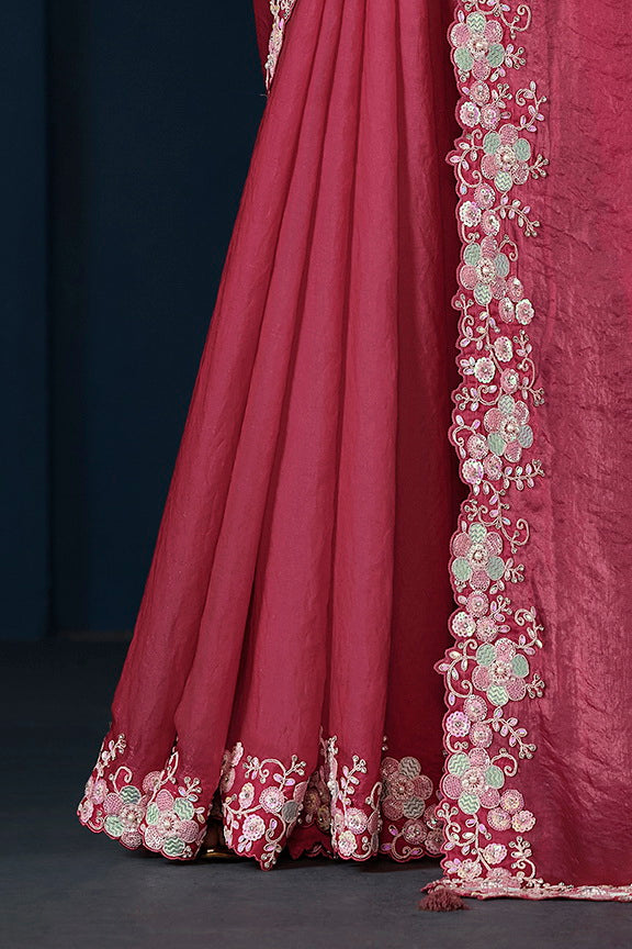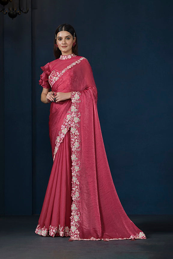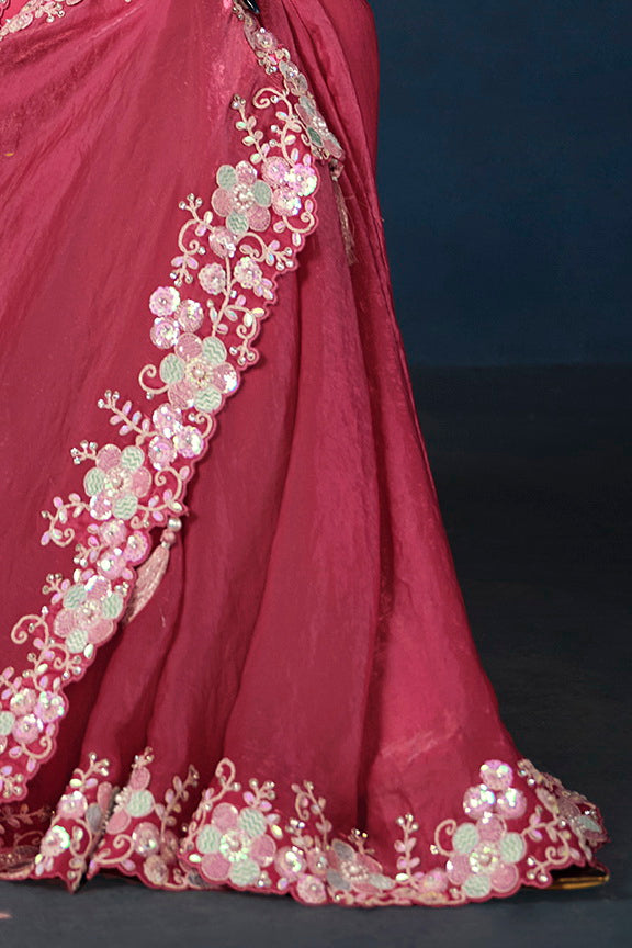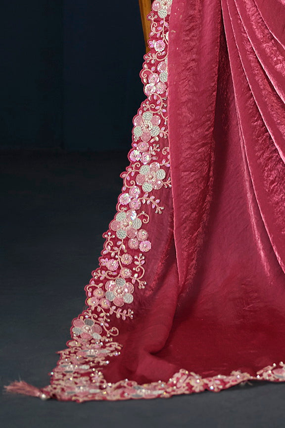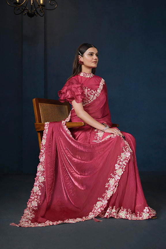 Pink Two Tone Satin Silk Sequins with Pure Handwork Saree with Unstitched Blouse