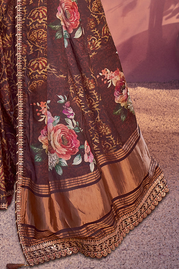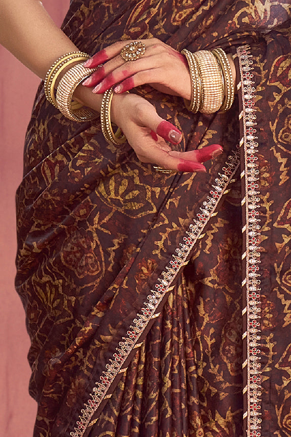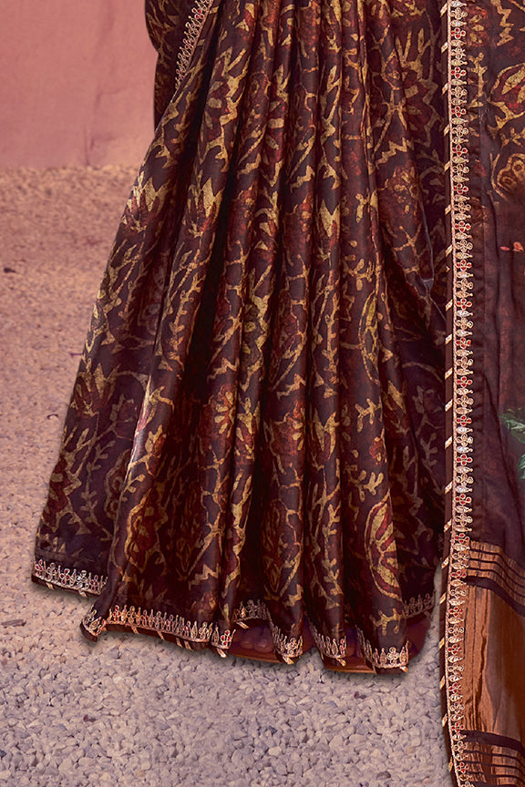 Brown Gajji Silk Minakari Work Saree
