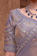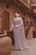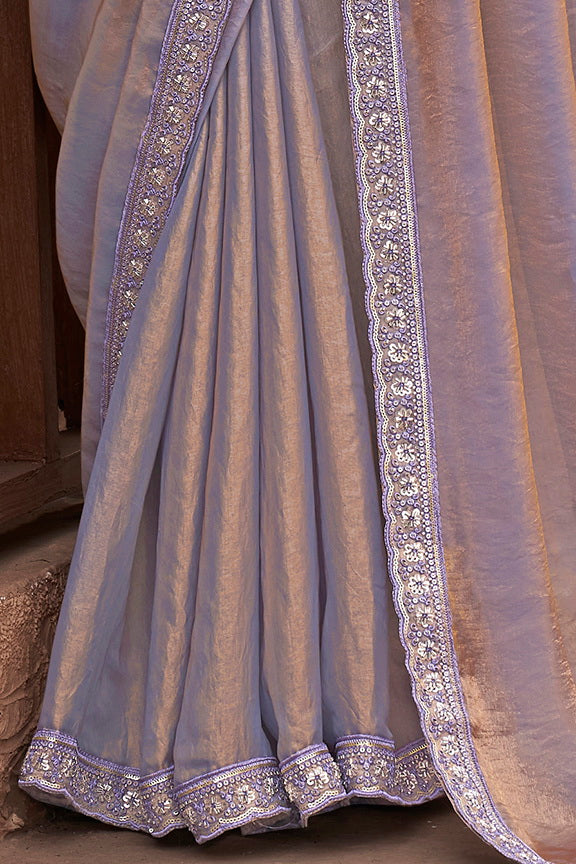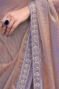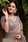 Chiku Gradient Satin Silk Artisanal Hand Embroidery Work Designer Saree with Stitched Blouse.