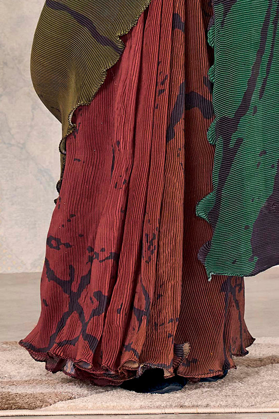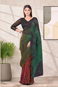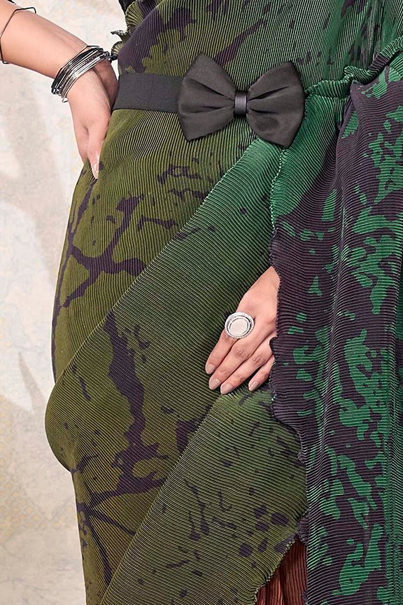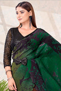 Green Pure Satin Silk Embroidery With Beads Work Ready to Wear Saree