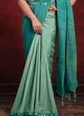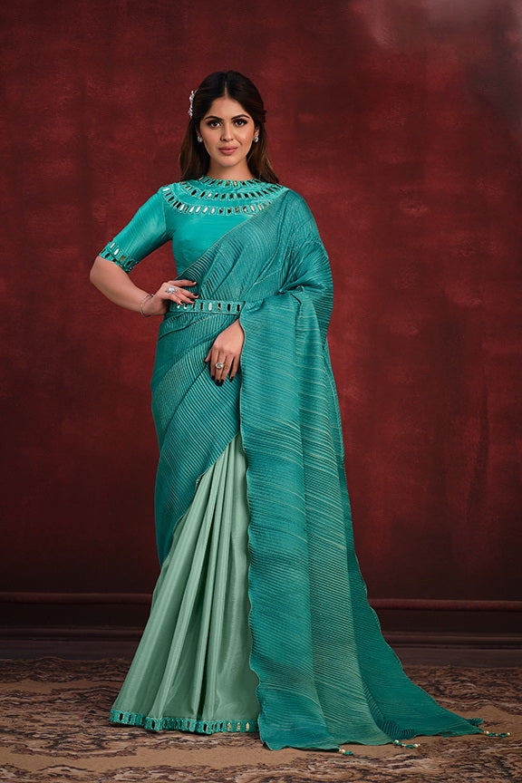 Blue Silk Georgette Texture Pallu Saree with Stitched Blouse