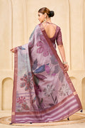 Purple Signora Zari Check Silk Floral Digital Print with Foil Print Saree