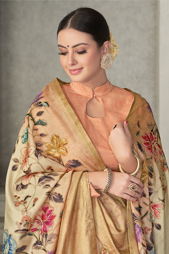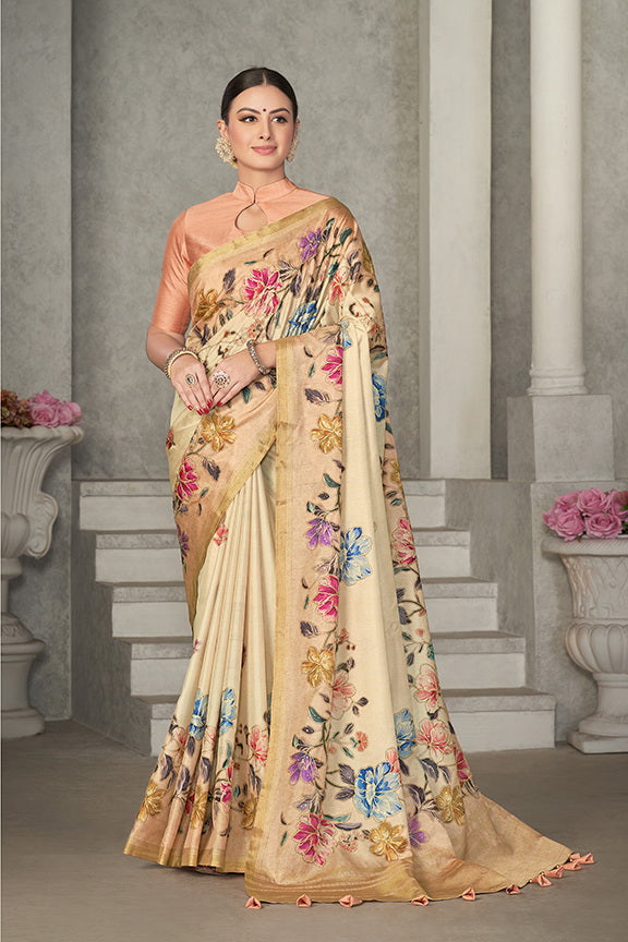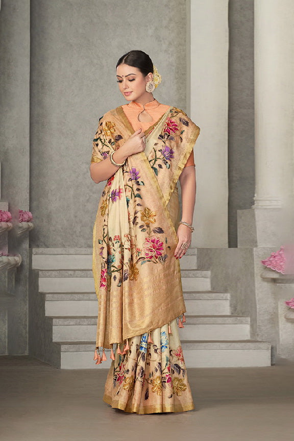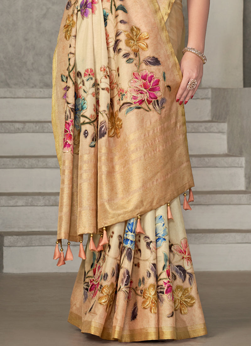 Beige Rangkat Tussar Silk Woven Design Saree with Unstitched Blouse