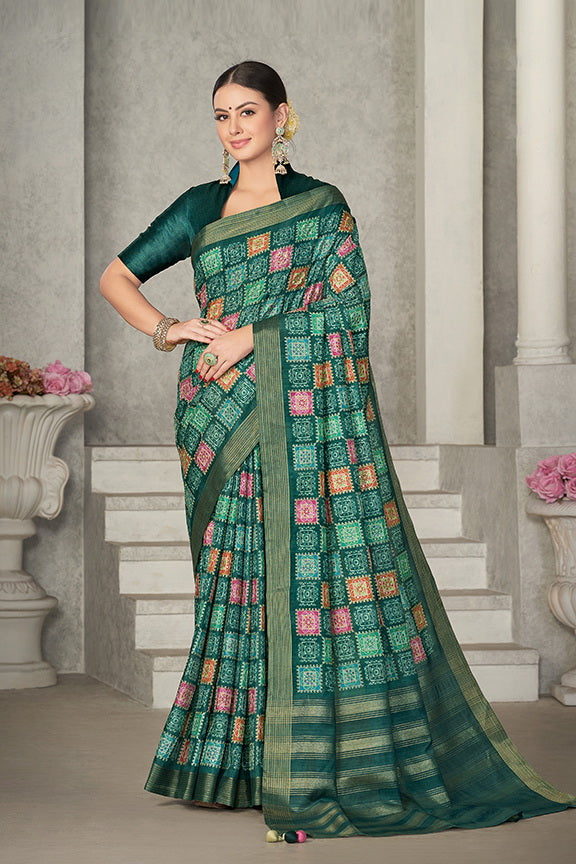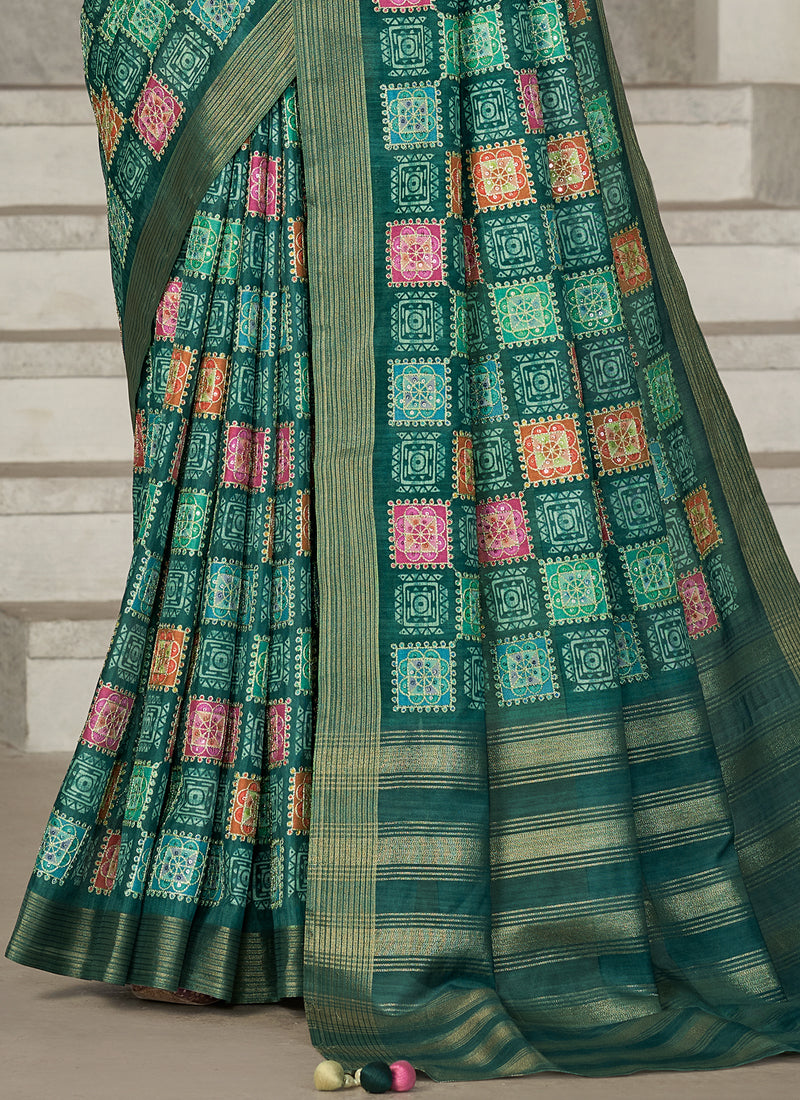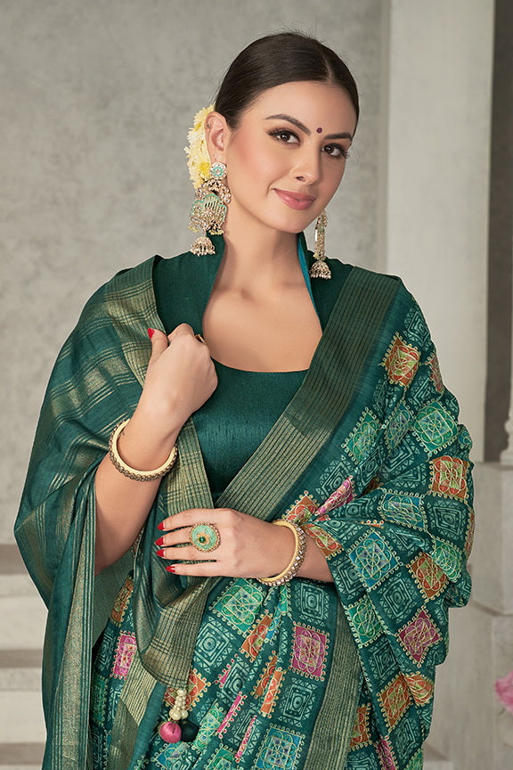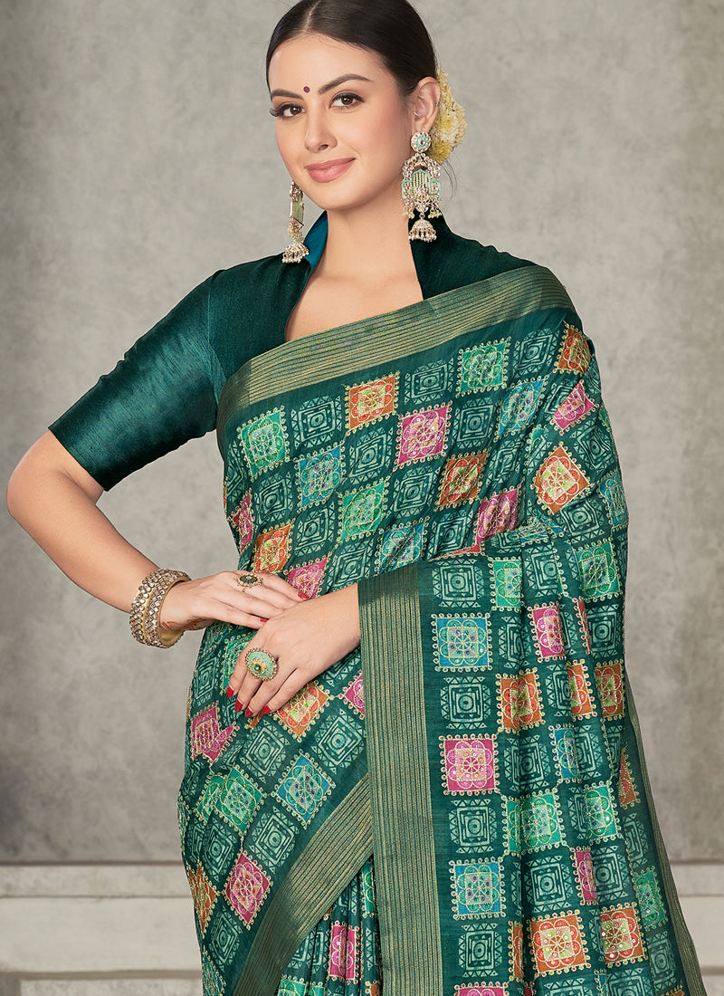Green Tussar Silk Embroidery Design Saree with Unstitched Blouse