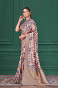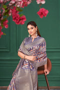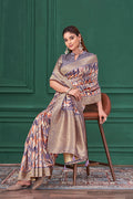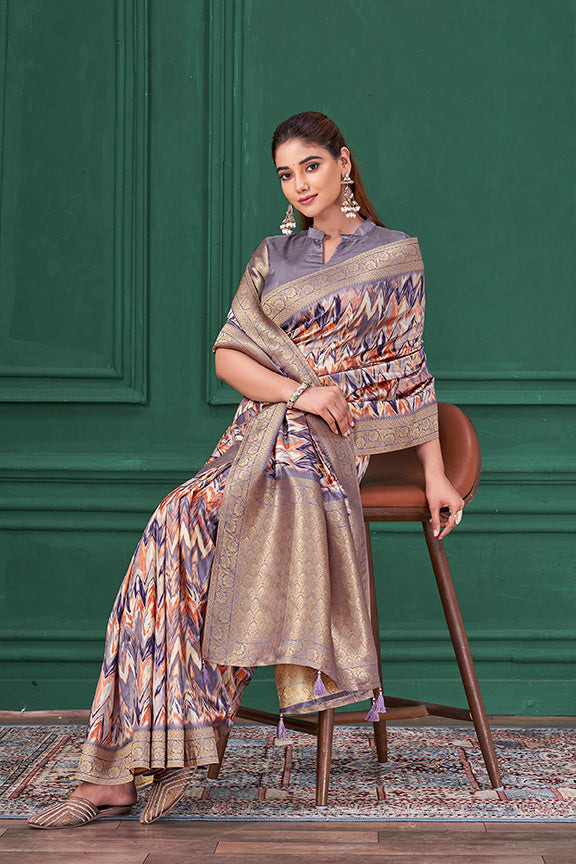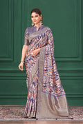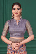 Purple Tussar Silk Jacquard Abstract Digital Print Saree