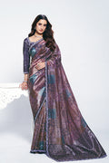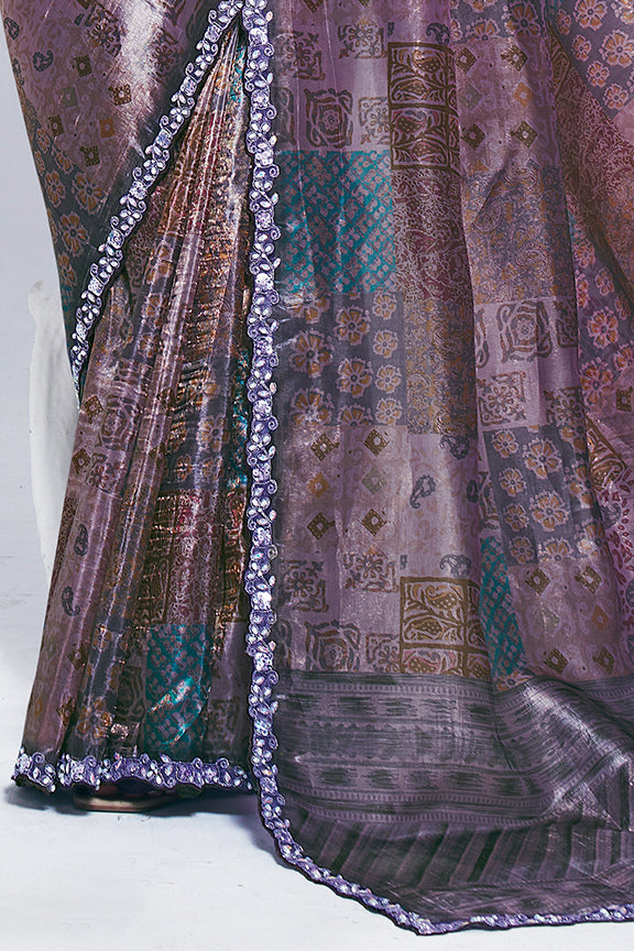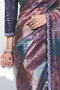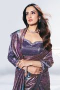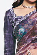 Purple Two Tone Paper Silk Stone Handwork Saree