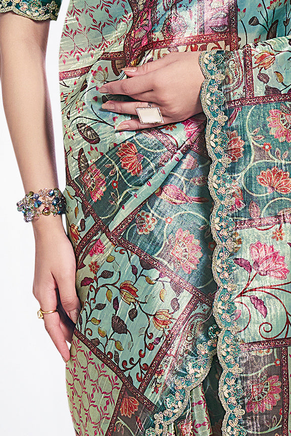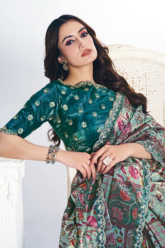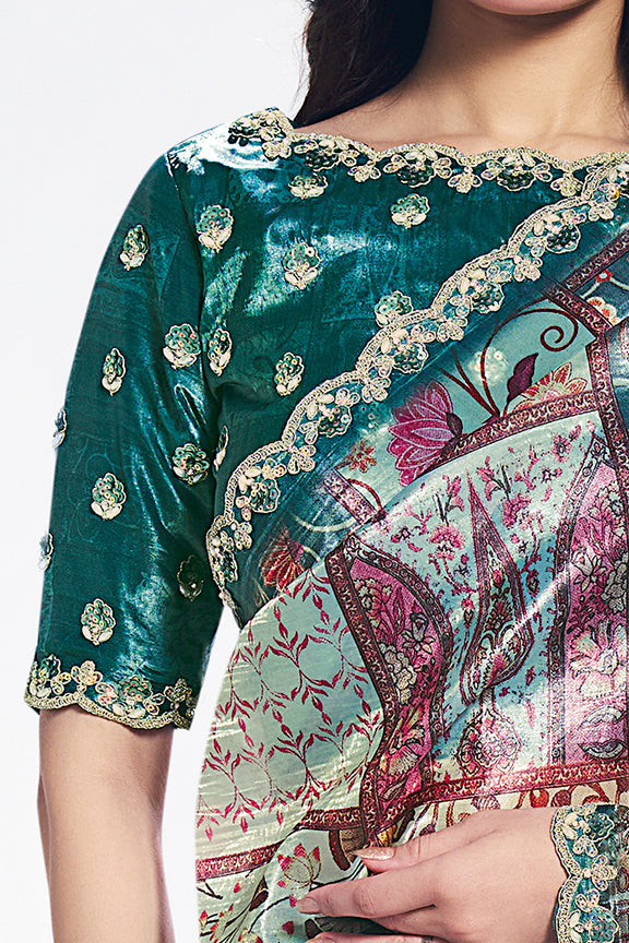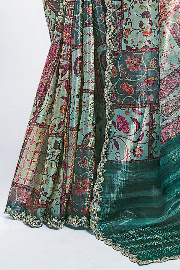 Rama Two Tone Paper Silk Stone Handwork Saree
