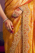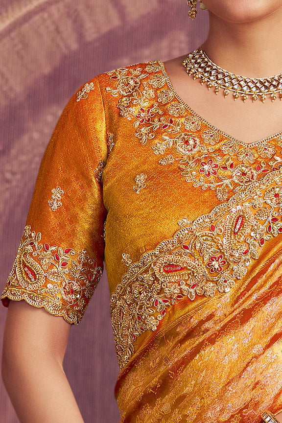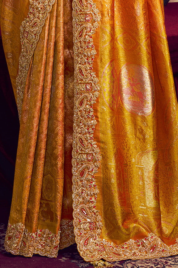 Saffron Gold Kanjivaram Pure Zari Silk HandWork Designer Saree