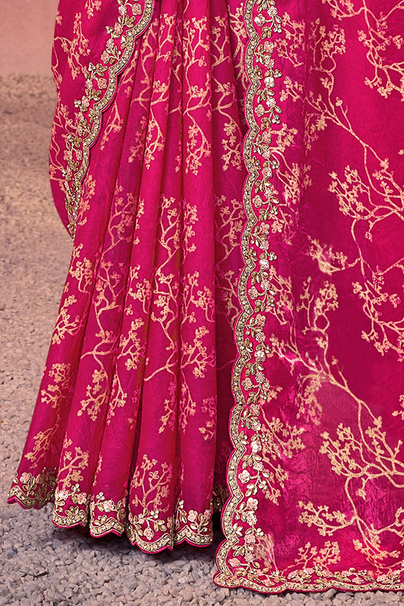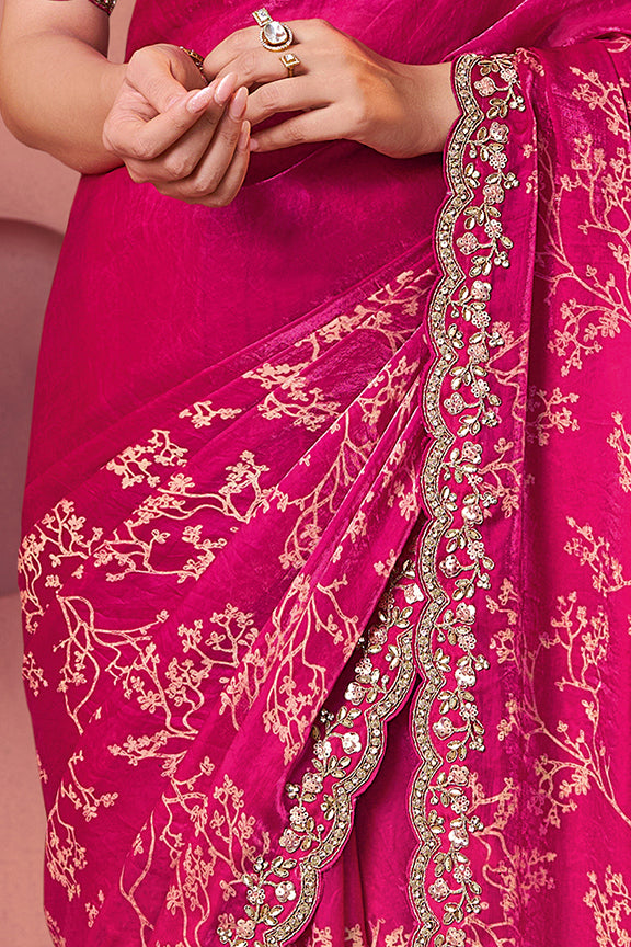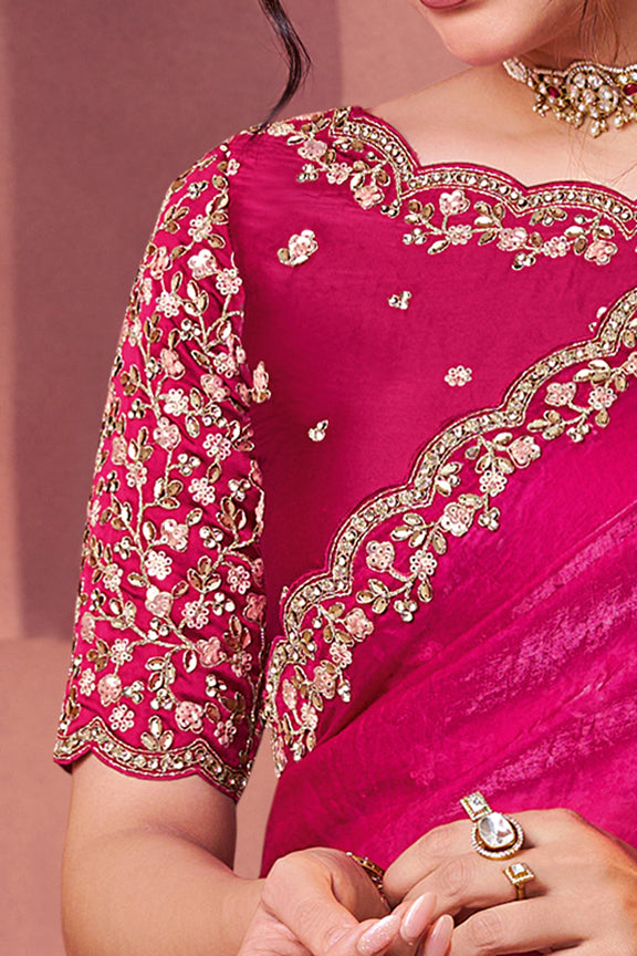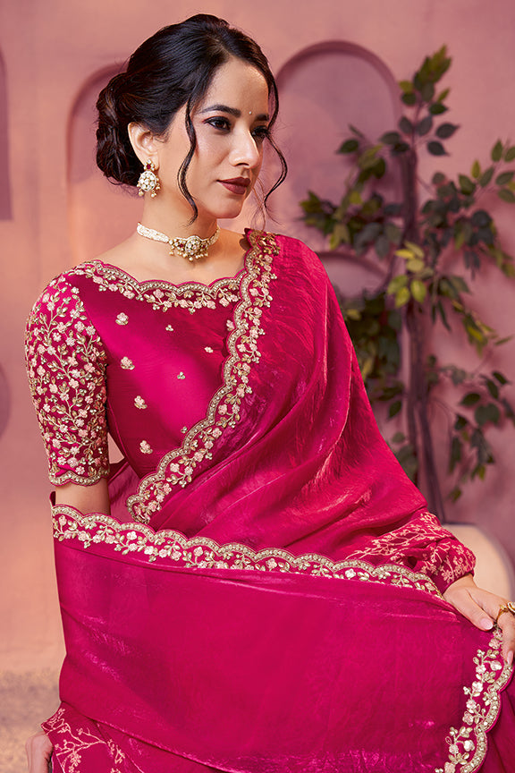 Rani Two Tone Satin Silk Handwork Saree