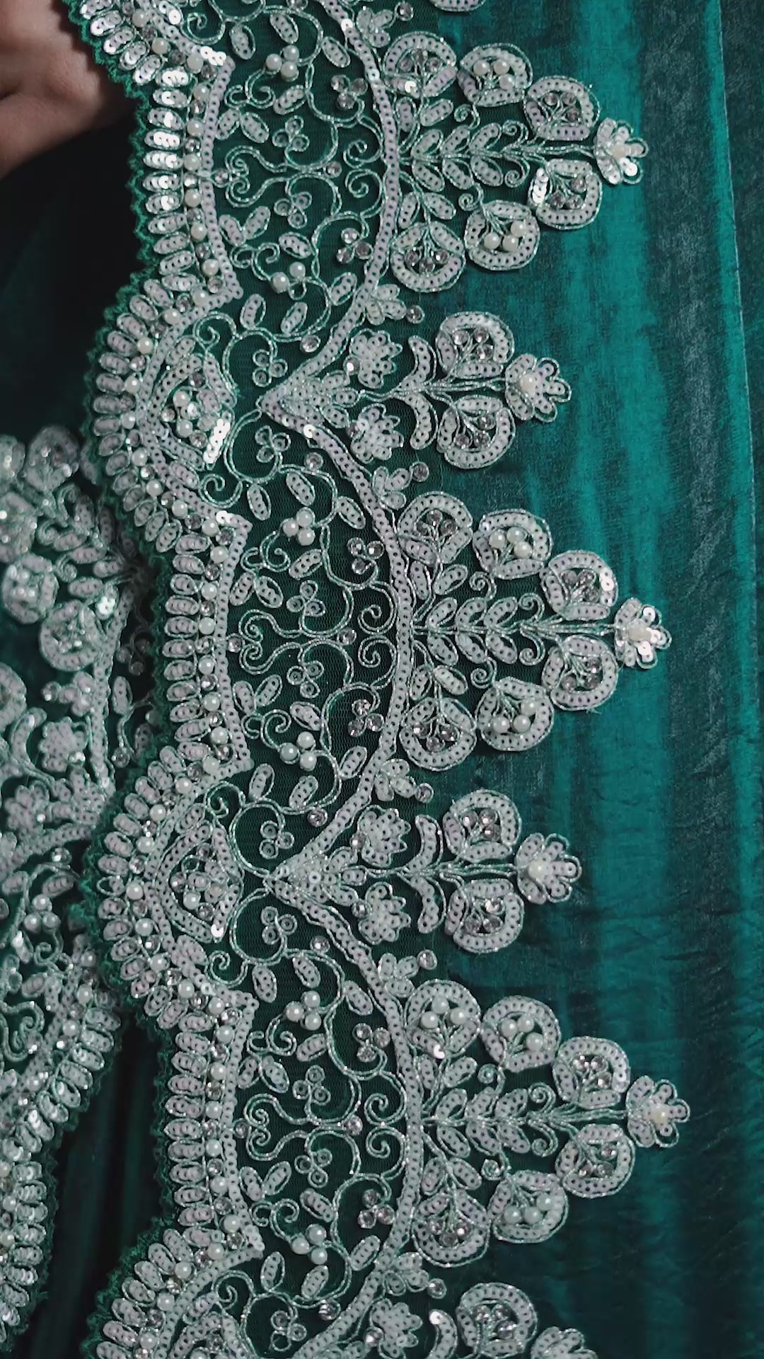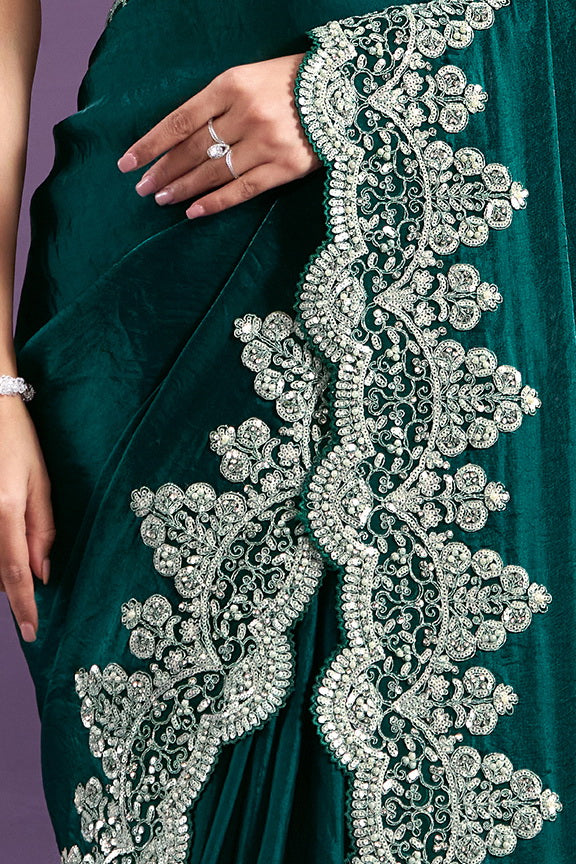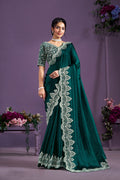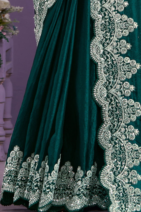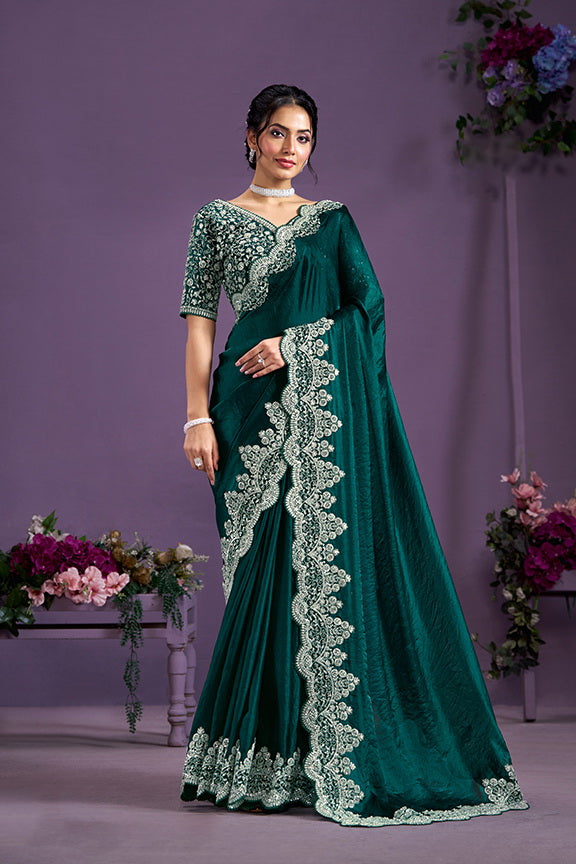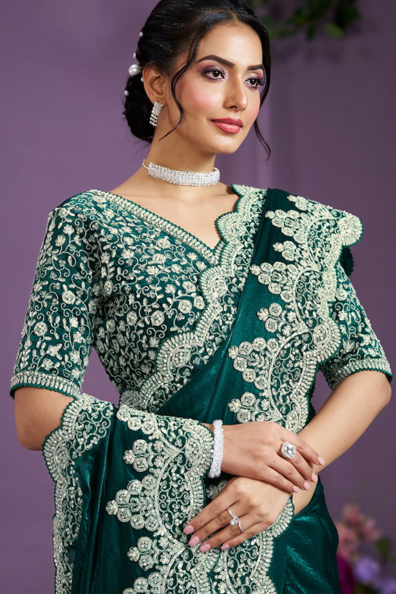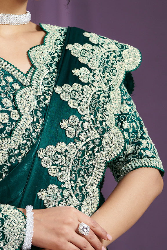 Green Hand Work Two Tone Satin Silk Saree