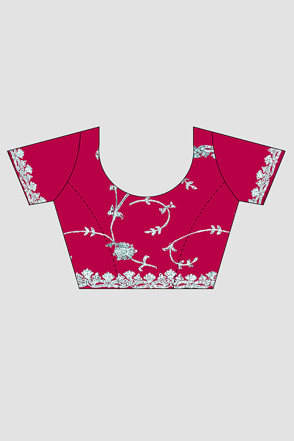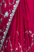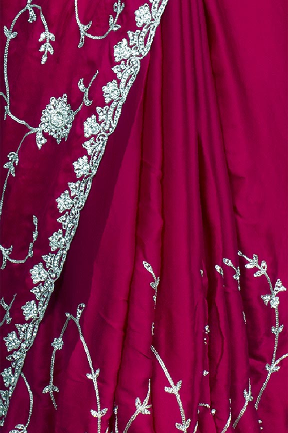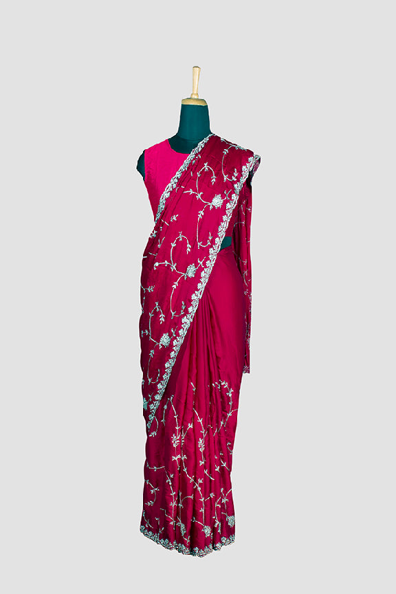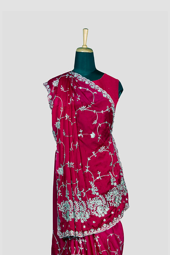 Red Satin Silk Hand work Saree with Unstitched Blouse