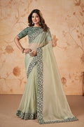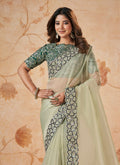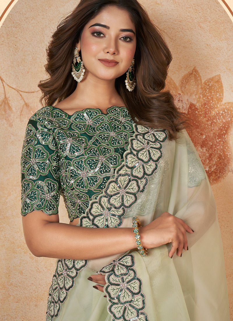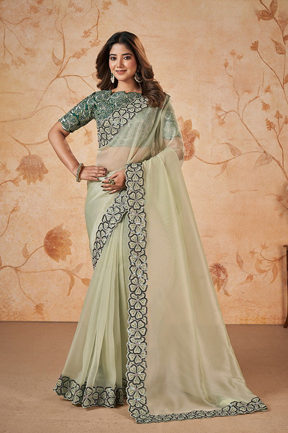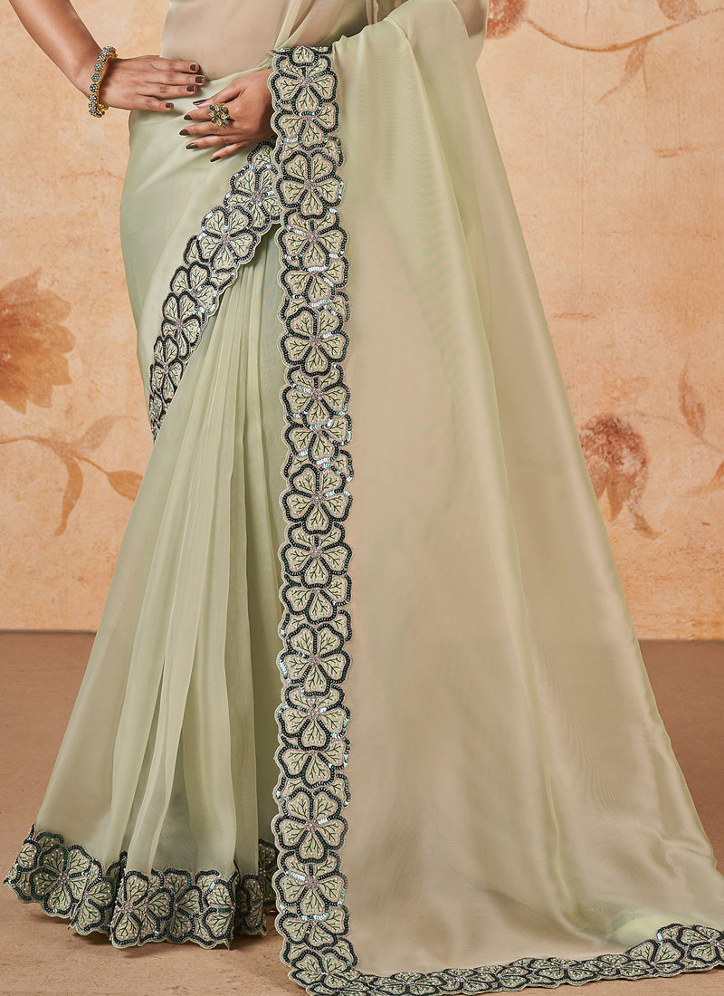 Light Green Net Organza Georgette Embroidered Saree with Unstitched Blouse