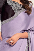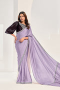 Lavendar Crepe Satin Silk Jardosi Saree with Unstitched Blouse Piece