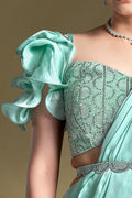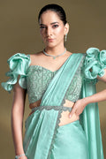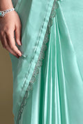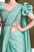 Sea Green Crepe Satin Silk Sequins Ready to Wear Saree