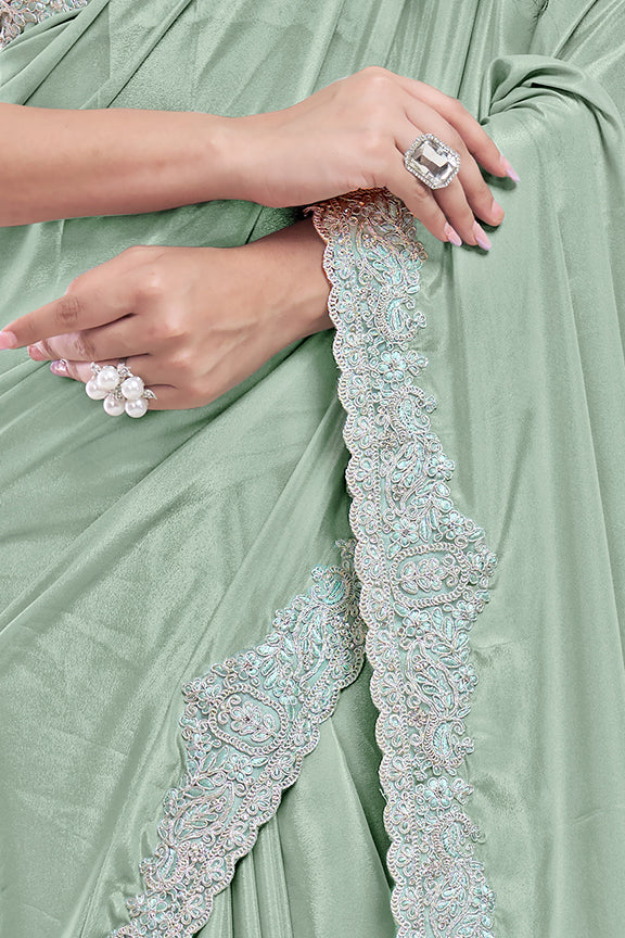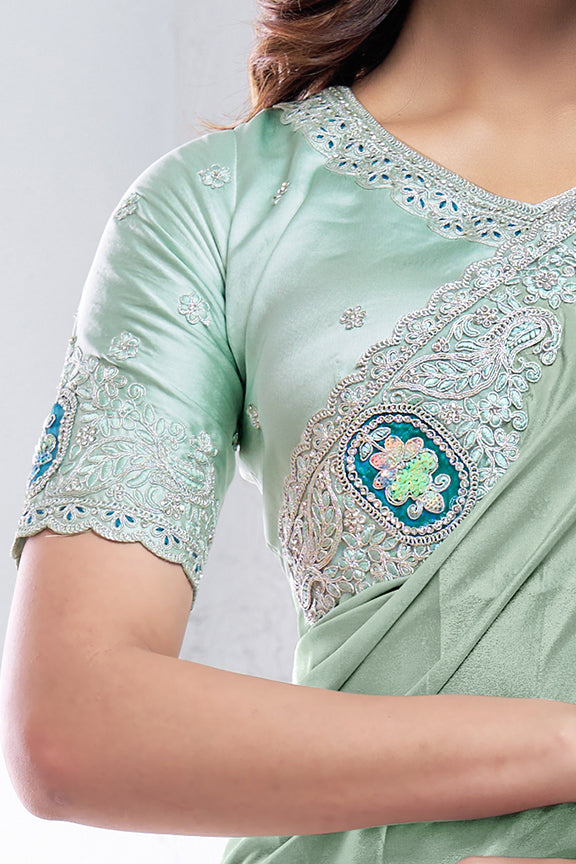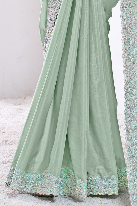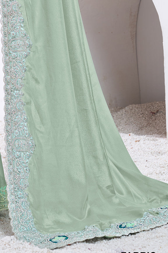 Sea Green Pure Crepe Silk Dual Sequence with Applic work Saree