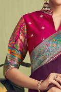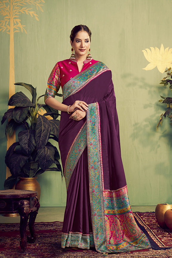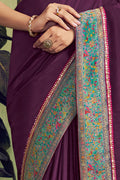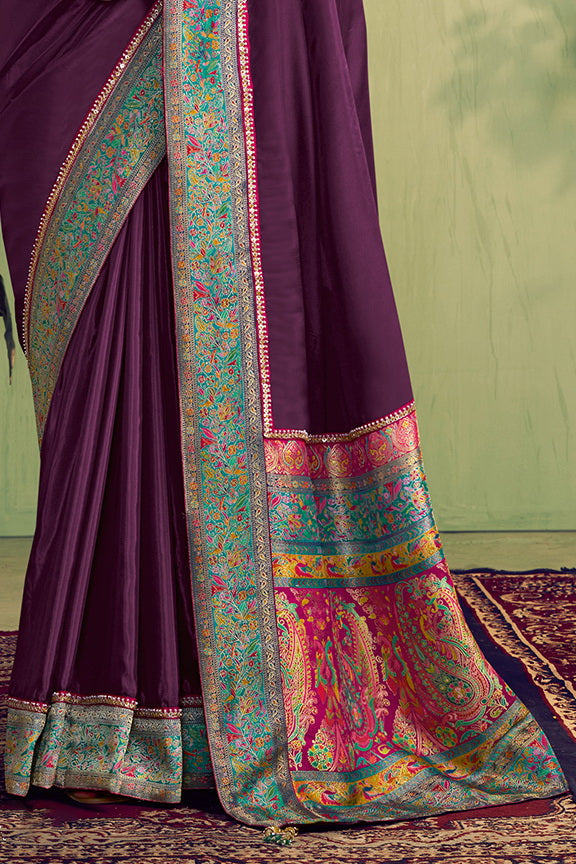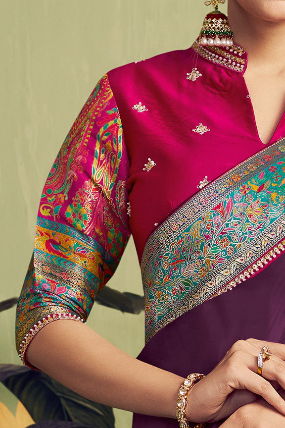 Wine Banarasi Rangkat Beads Embroidery Saree