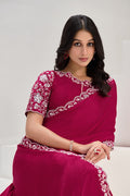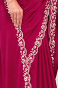 Pink Crepe Satin Silk Sequence Saree with Unstitched Blouse Piece