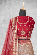 Red Net Embroidered Semi Stitched Lehenga Choli with Dupatta