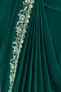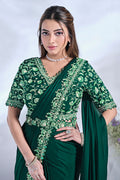 Green Mirror Work Satin Silk Ready to Wear Saree