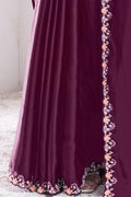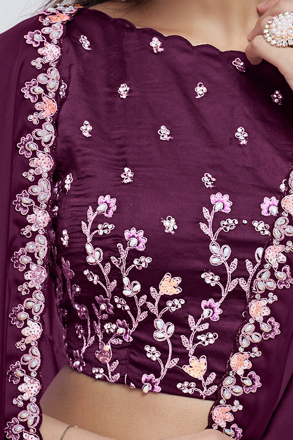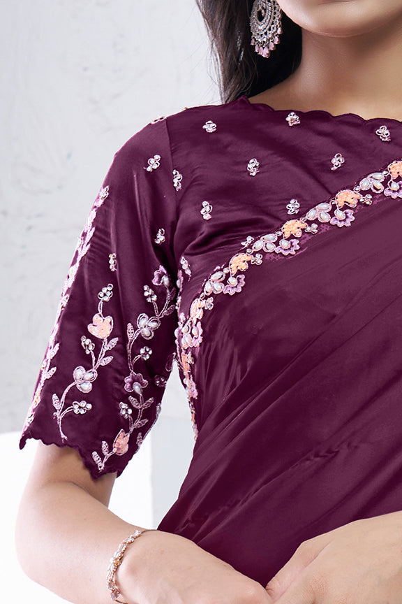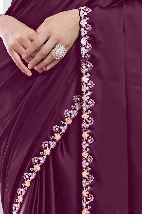 Wine Crepe Satin Silk Dual Sequence with moti work Saree