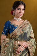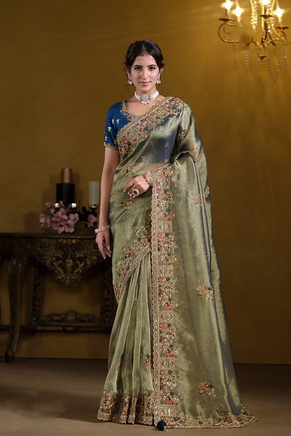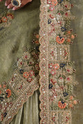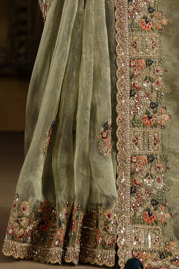 Green Pure Georgette Pure Khatli work Designer Saree With Blouse.