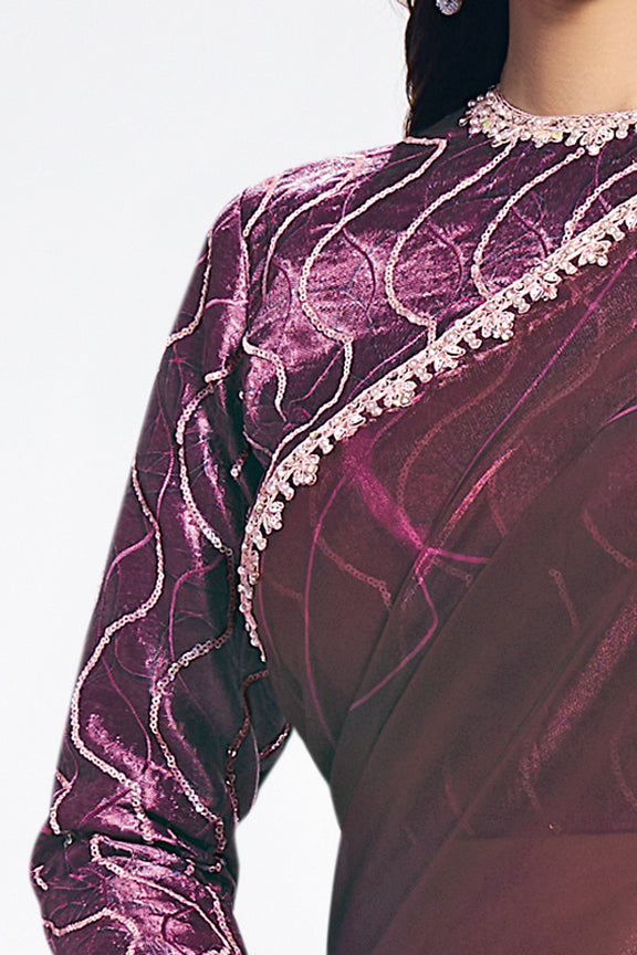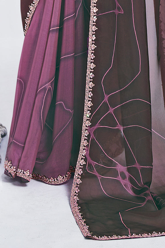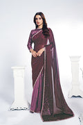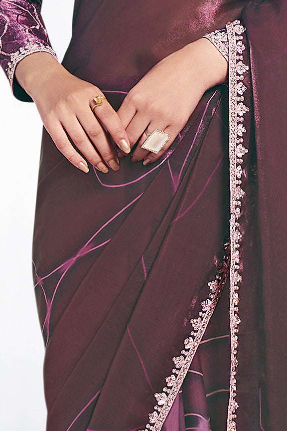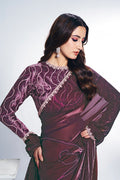 Wine Two Tone Satin Silk Stone Handwork Saree
