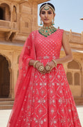 Pink Georgette Mirror Work Lehenga Choli