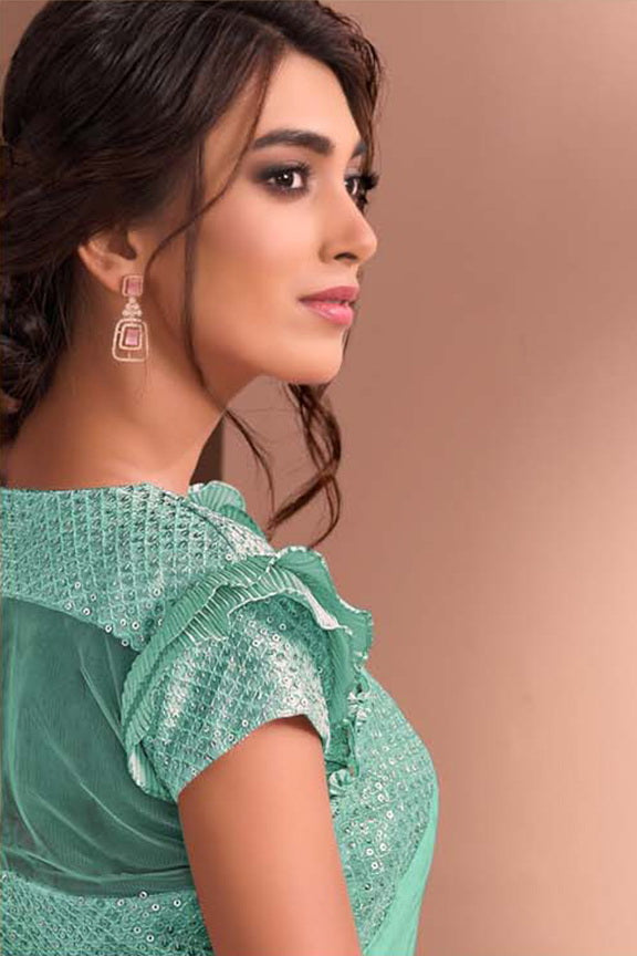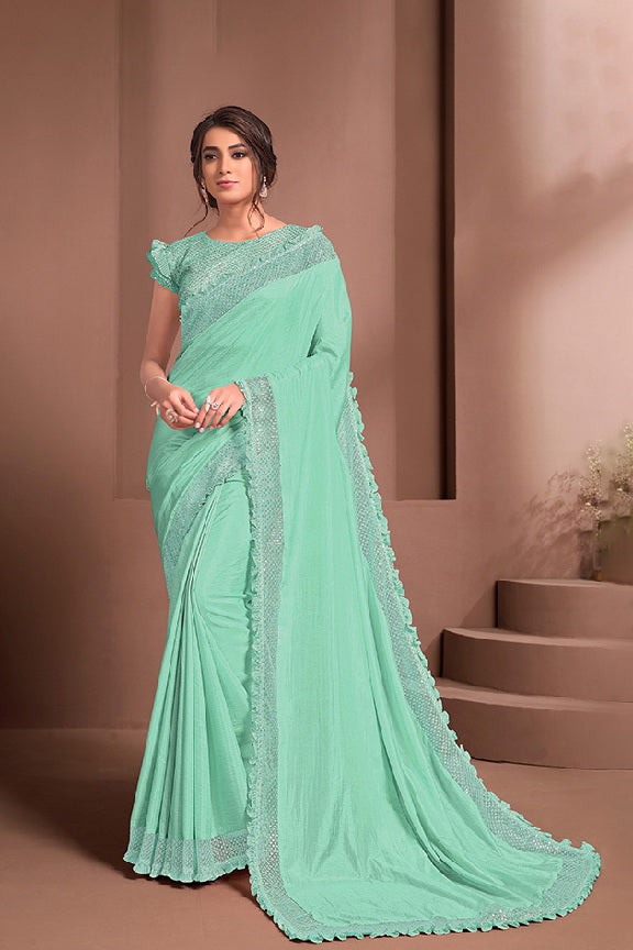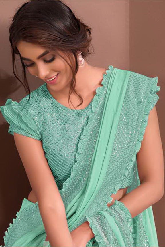 Green Silk Georgette Embroidered Saree With Unstitched Blouse